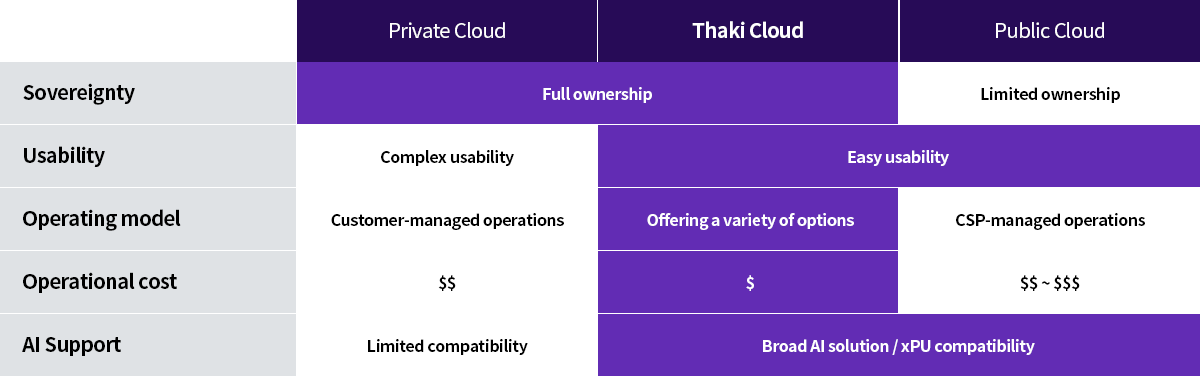 Thaki Cloud는 자국 시장에 최적화된 프라이빗 클라우드 환경을 제공함으로써, 데이터 주권을 확실히 보장합니다.