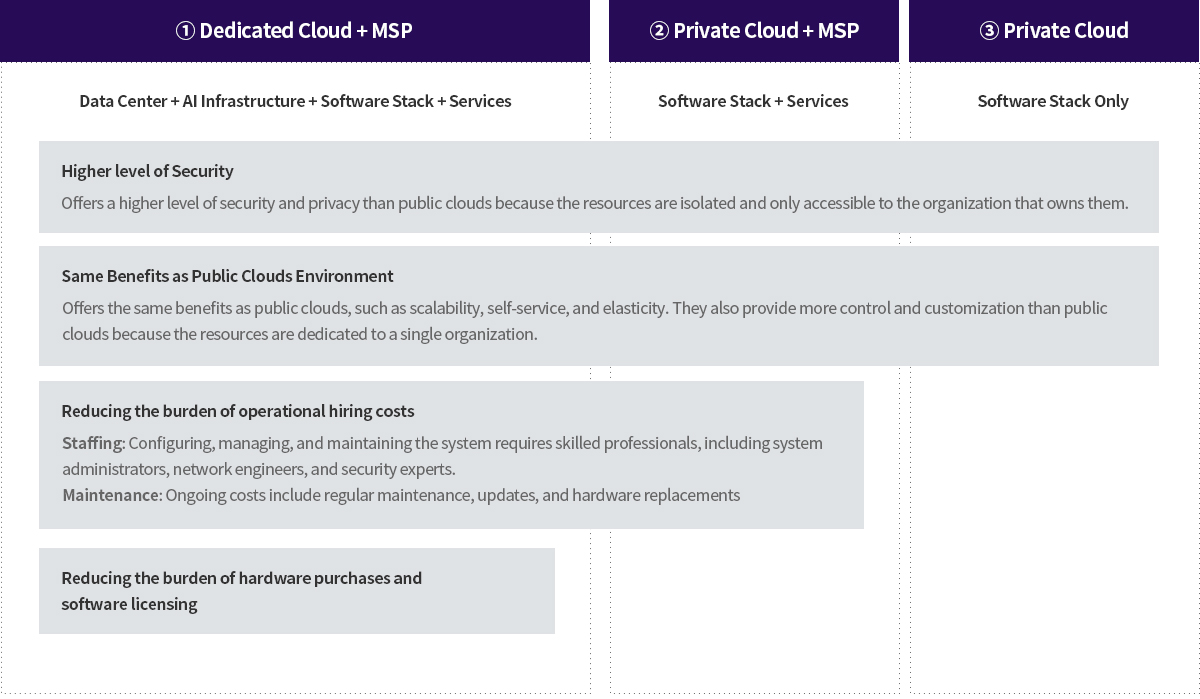 프라이빗 클라우드와 호환되는 AI 스택 및 서드파티 솔루션 지원